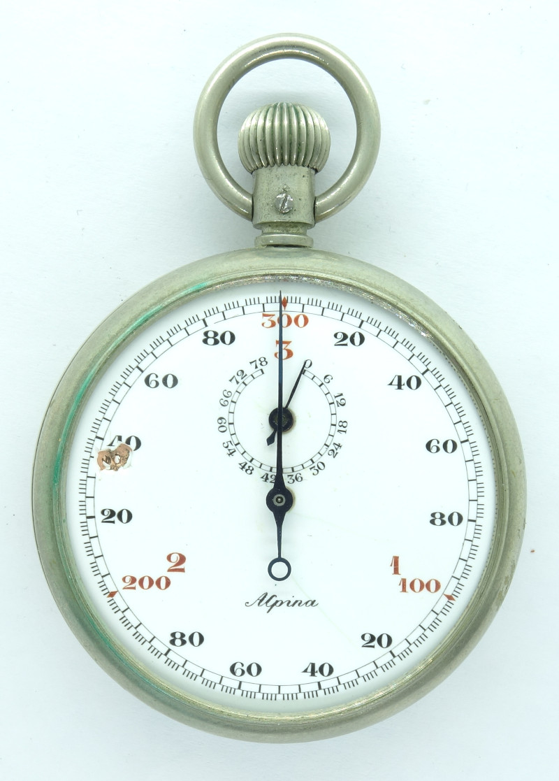 The speciality of this movement is, that its balance wheel oscillates with no less than 360.000 A/h, which allows a measuring resolution of 1/100 second!