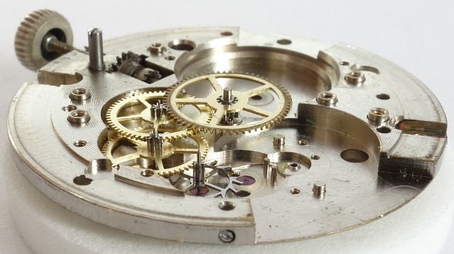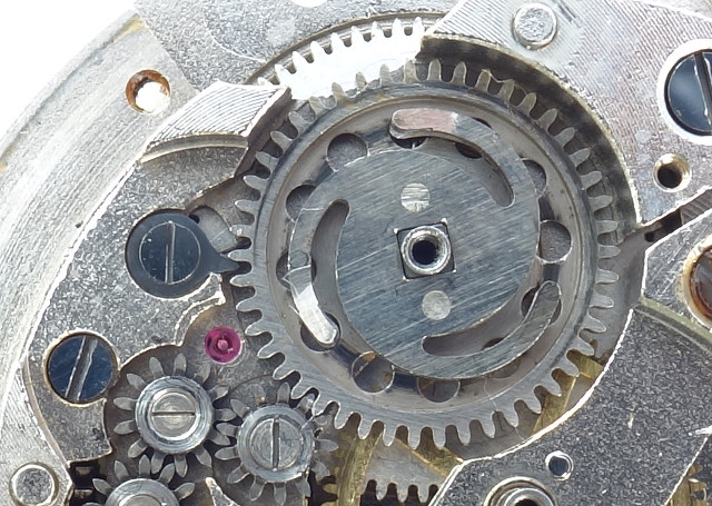 As you can see, the commutator clutch is a very simple construction. It is the only part, which is connected to the square of the mainspring barrel. Both clutch gears instead are not connected with the mainspring barrel.