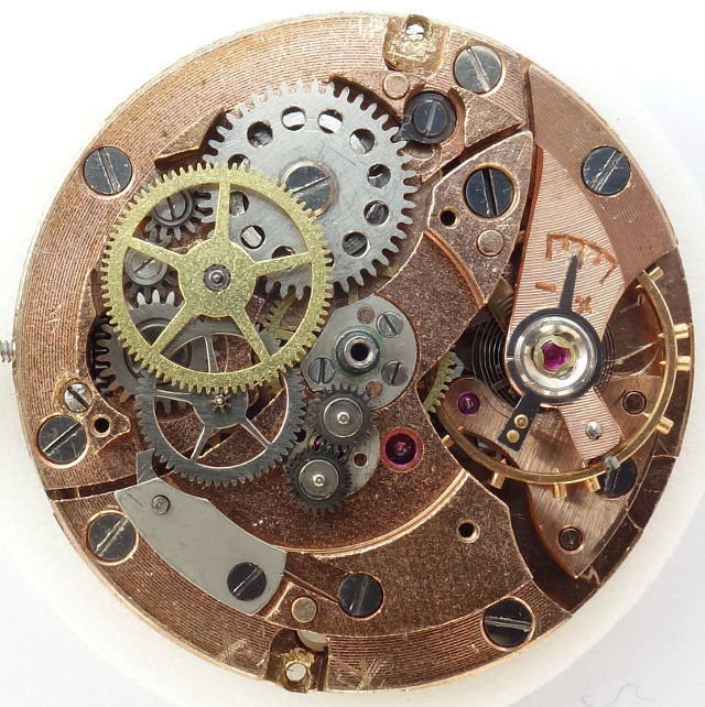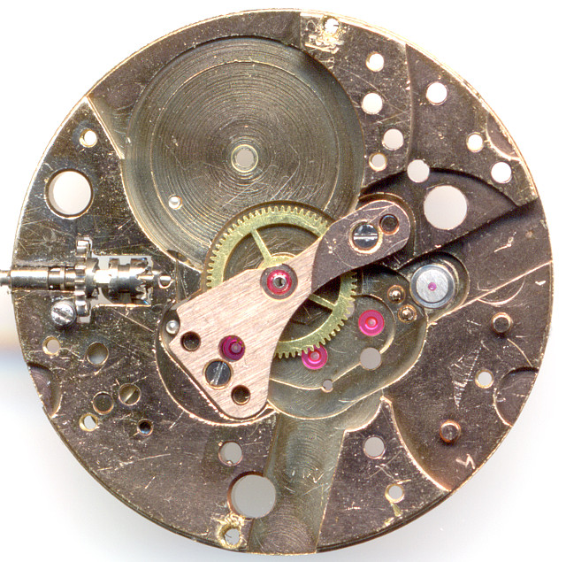 As usual on movements from the 1950ies, also the Bifora 111A has got a directly driven center minute wheel, which is beared under an own cock.