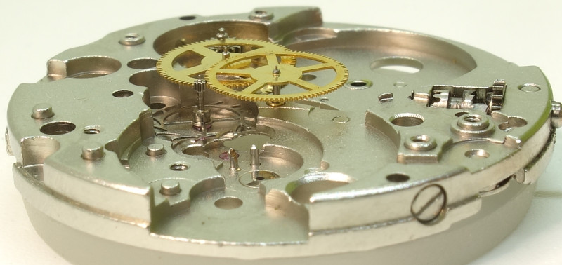 At positions 1, 5 and 9 o’clock, you see the recesses for the springs, which are required for the calendar setting correctors.