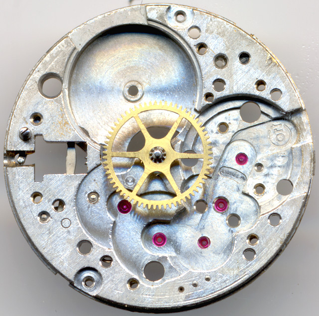 On the dial side, you see apart from the specially shaped setting lever angel also parts of a minute dial, which was used that time to regulate the movements before casing them in.