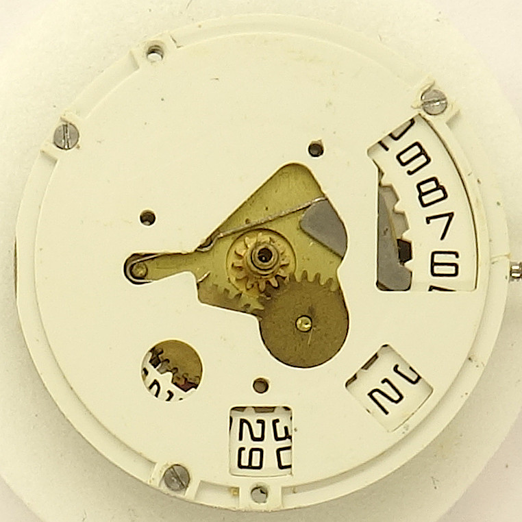 The calendar module of the CRC 962/21 is mostly made of plastic and mounted on top of the dial side. Since aged plastic is especially fragile, it was not further disassembled.
