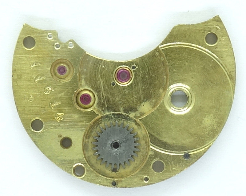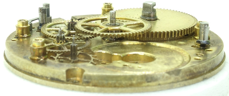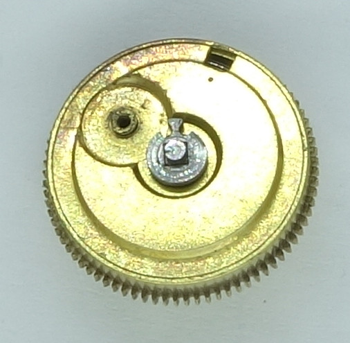 The mainspring barrel has got a maltese cross, of which the second part is missing. If it was always missing, or if it is one of the generally missing parts of this incomplete specimen, is unknown.