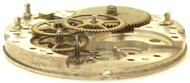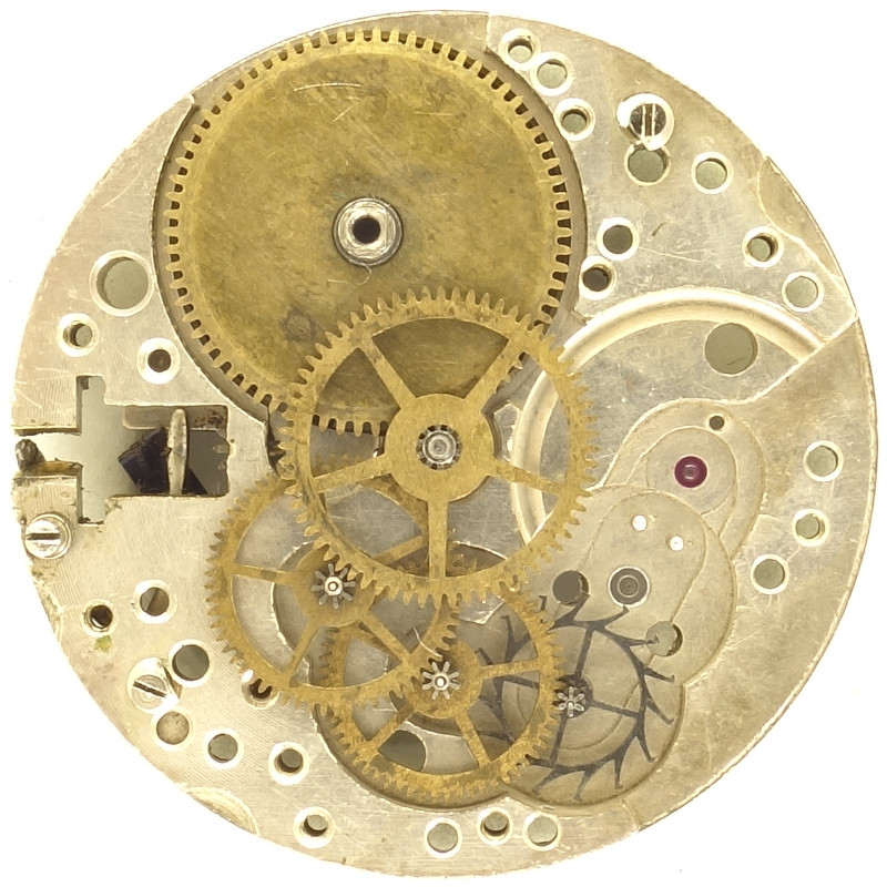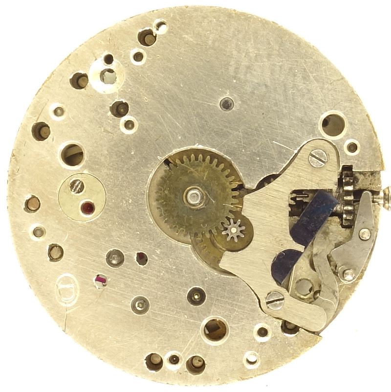 It has got the standard diameter of 10 1/2 lignes and uses 15 jewels, some of them, probably due to war, transparent instead of ruby-red.