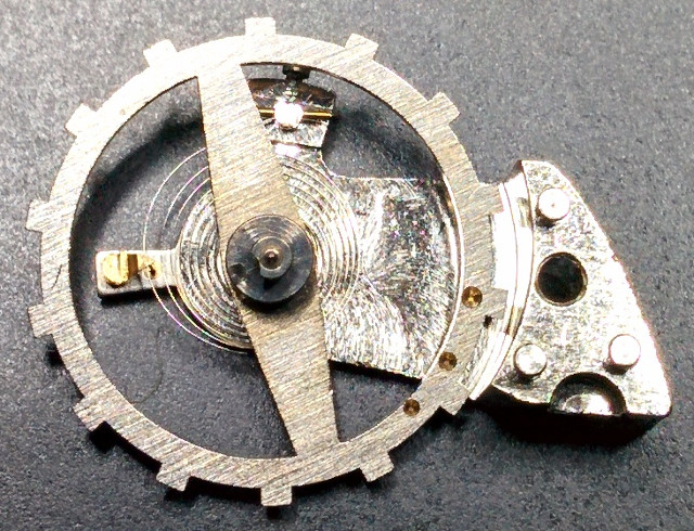 You can see here, how the screw imitations were made, by cutting out lots of half circles from the balance ring. Lots of work for no functional impact. However, the lower side of the balance wheel looks a little more crude: