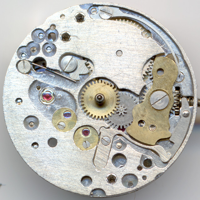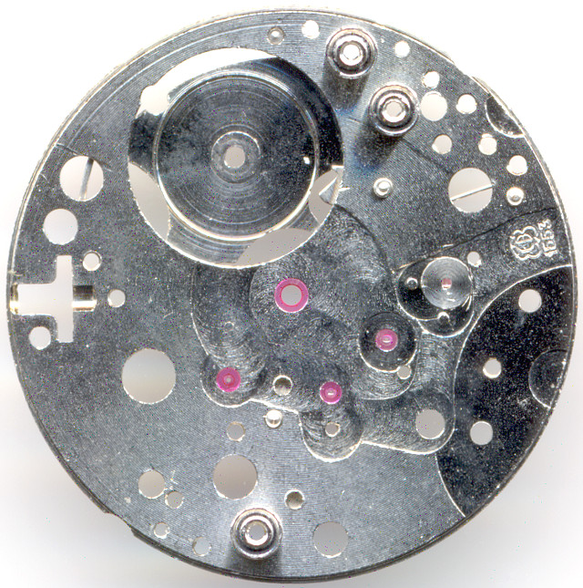 The cap jewels give the impression of a costly movement, however the cap jewel of the lever axle (at 8 o’clock) is useless, since you never oil the lever axle bearing and hence need no cap jewel for retaining the oil here.
