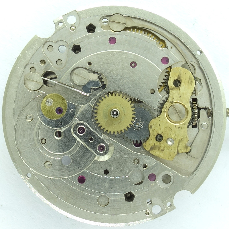 You can also see the four blind jewels, which only with very, very much goodwill a slightly lower friction of the calendar ring can be thought of. In reality, this is not valid, since the date ring never has got so much friction, that it would negatively influence the precision of an imprecise pin lever movement.