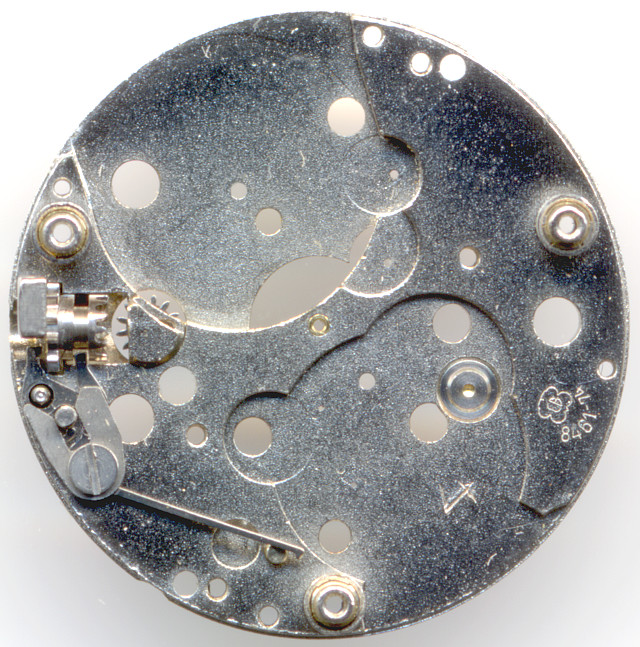 The biggest differences to the predecessor EB 8461 are a simpler constructed, flat, balance wheel cock and the use of a pin instead of a screw for securing the setting lever. To release the crown, you have to directly lift the setting lever with the smallest screw driver!