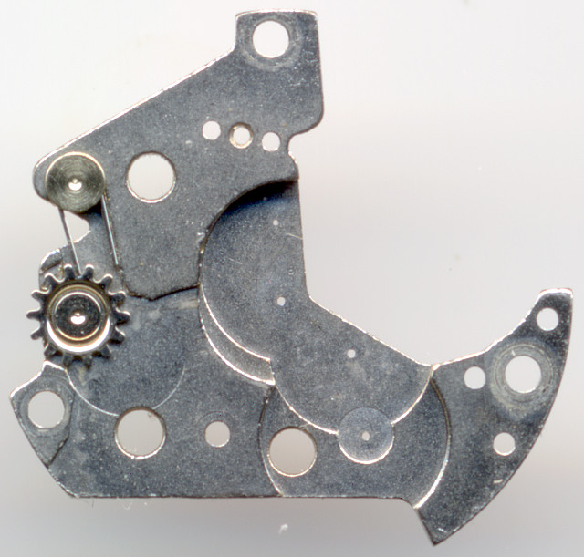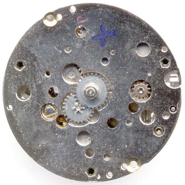 The only jewel of this movement is the ellipse of the balance wheel, which interconnects with the fork of the (pin-)lever.