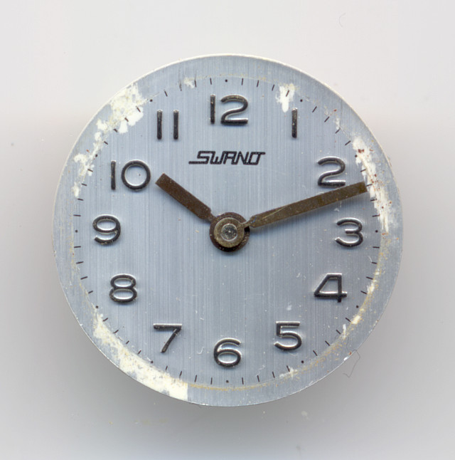 The balance wheel is beared in two Novodiac shock protections, which don’t use any rubies but only metal bushings and caps. It beats with 18000 A/h and regulates a pin lever movement. As common on EB movements, the balance wheel is flat and light and also the hairspring is much weaker than on other movements. If don’t care, it will bend on the slightest occasion.