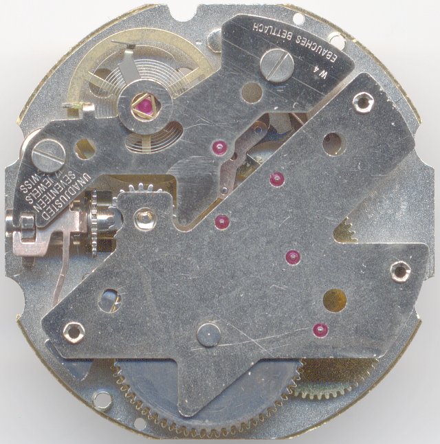 The bridges of the EB 8503-76 are made of die-cutted metal sheets (a method which was even patended), but at least they contain ruby bearings for all gears.