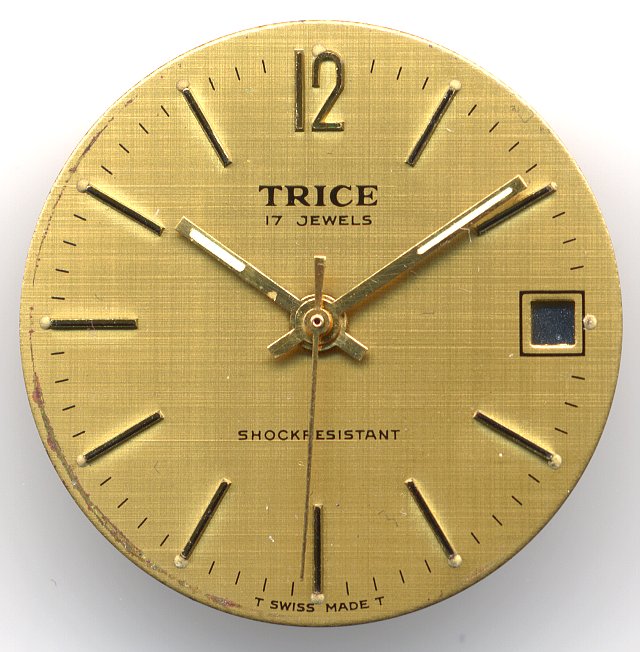The date setting mechanism is invisible, since the top plate is riveted and cannot be removed. The driving mechanism for the minute wheel is invisible, too.