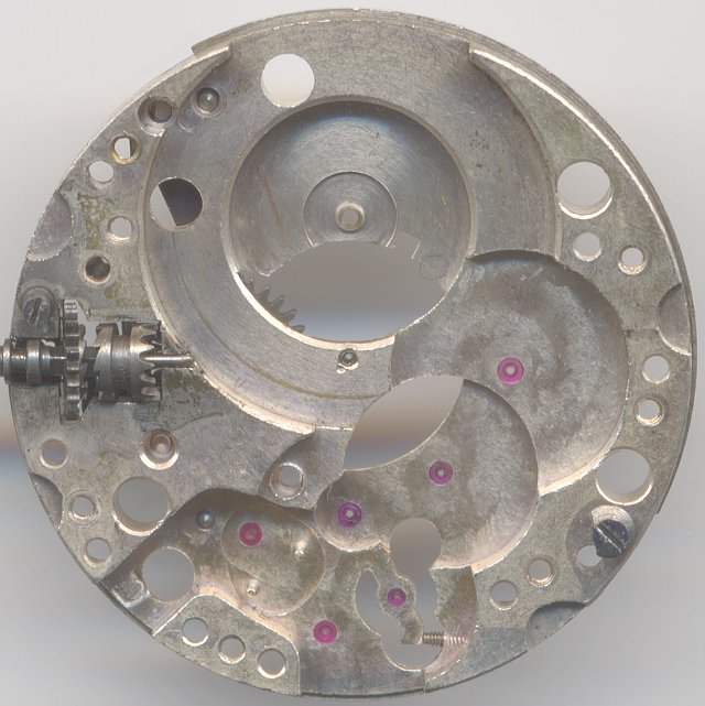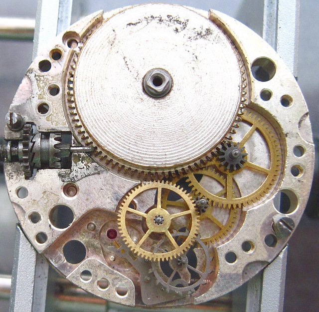 At “12” you see, how the hour wheel is connected with the exchangement wheel of the mainspring barrel. That’s typical for a Roskopf movement.
