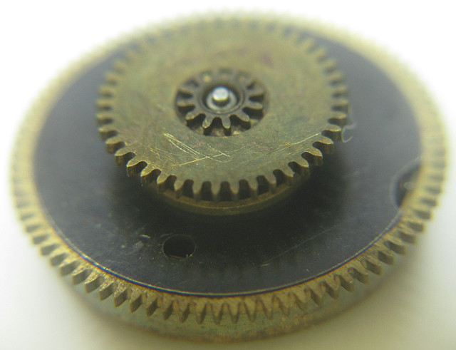 As you can easily see, it’s a Roskopf construction, where the directly driven center second wheel resides below the mainspring barrel. The hands are both driven on the dial side by the mainspring barrel with a friction gear, while the center second is driven on the movement side by the mainspring barrel, with two intermediate gears, third and large driving wheel.