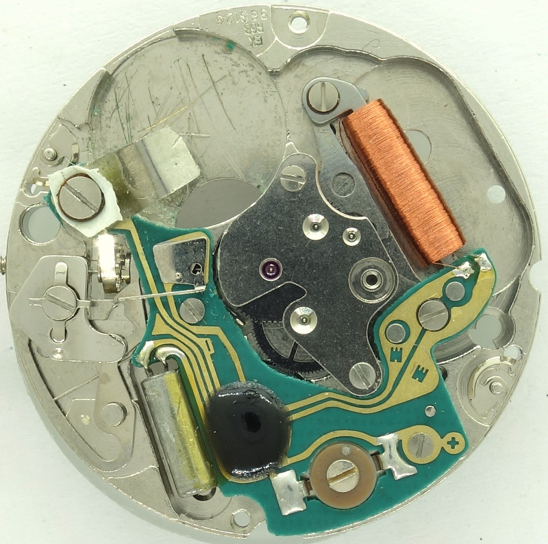 With the large minute wheel, on which the cannon pinion is attached to with a slipping clutch, the hands works are similar to those of the familiar mechanical ETA calibers.