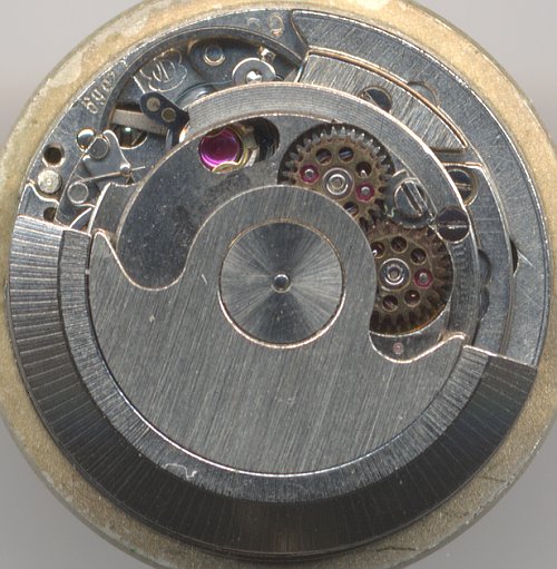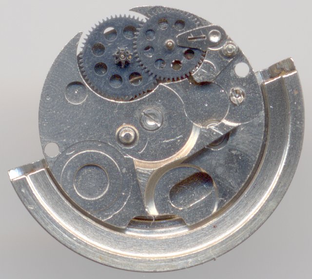 The selfwinding mechanism used the common ETA pawl winding wheels plus two following gears.