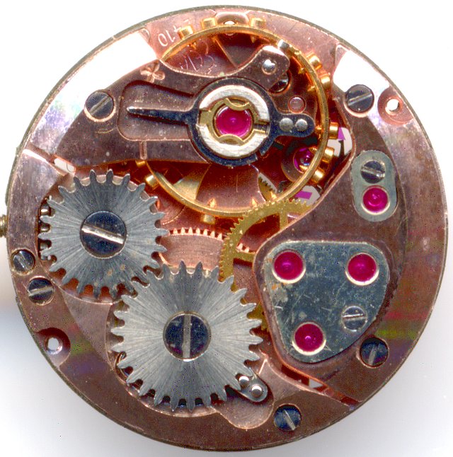 The speciality of this movement is, that its minute hand is no longer driven directly, but indirectly on the dial side by the train of second wheel. The first wheel stays in contact with the mainspring barrel and drives the whole movement.