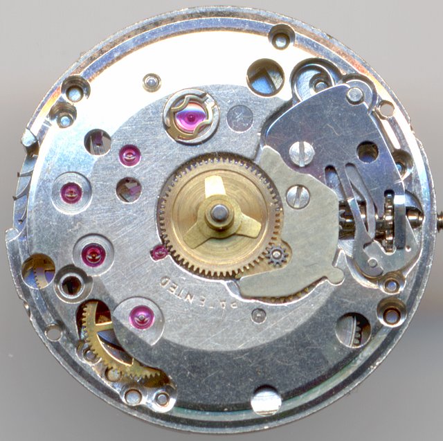 A characteristic thing of this movement is its indirectly driven minute hand (achieved by the third wheel), which allowes increased space for a larger balance and a larger mainspring barrel. Both are responsible for longer runtime and increased precision. In constrast to many other ETA movements, the dial-side bearing of the third wheel is realized by a synthetic ruby, while the mainspring barrel lacks a ruby (which is not really neccessiary btw.).