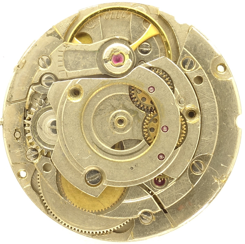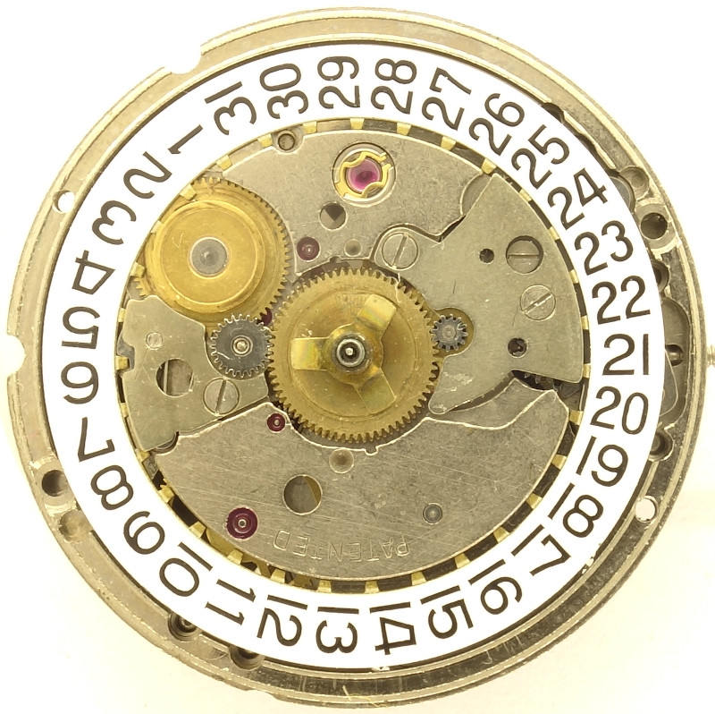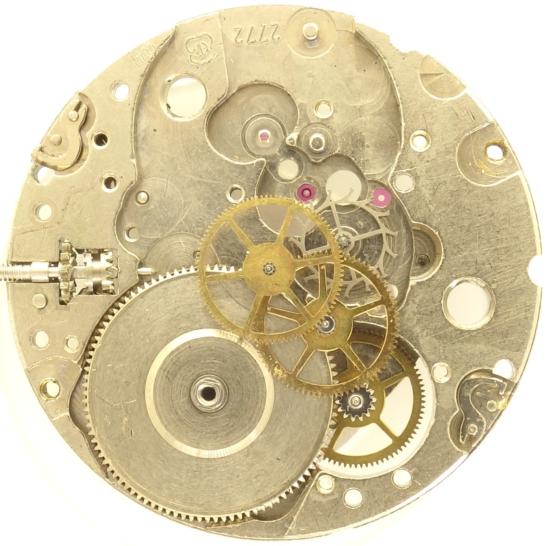 The ETA 2772 has got the standard ETA gear train, which drives the hands indirectly on the dial side by the third wheel.