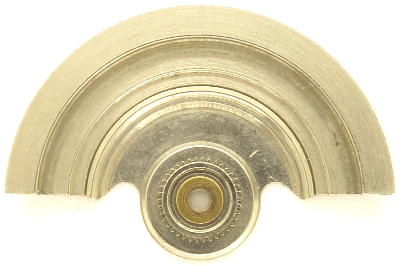 The ETARotor selfwinding mechanism uses two pawl changers and two reduction steps. You can see, that the last reduction gear has got no own axle, but is hollow and beared on a massive axle.