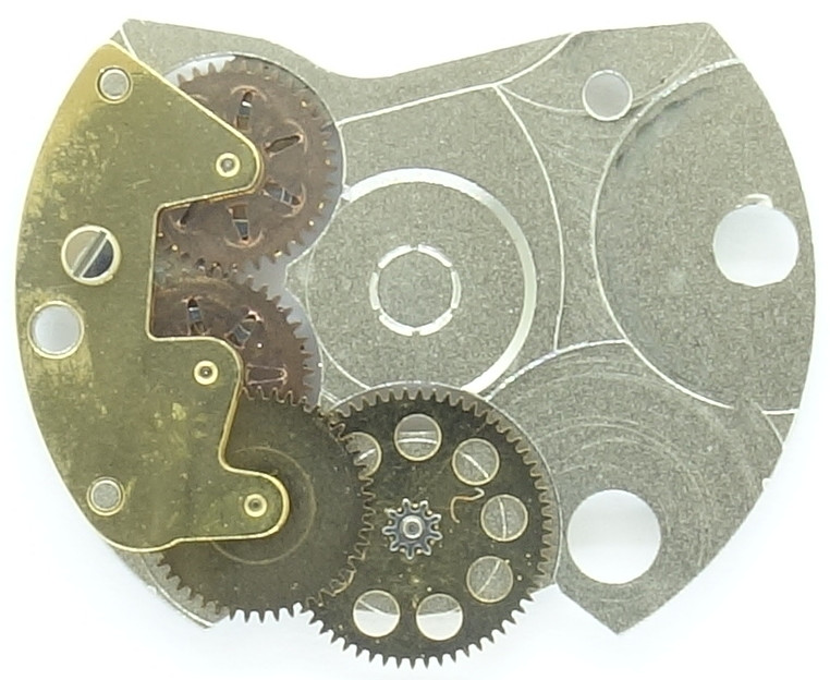 Thehands are driven via the lower gear of the third wheel. It engages the minute wheel on the dial side, which has a slip clutch with the cannon pinion and thus drives the further hands (and the date indication)