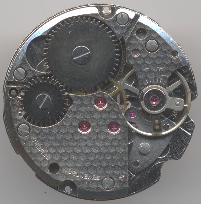 A true curiosity is the location of the seventeenth jewel: It bears the hands setting gear. On the list of useless jewels, it has got a top position for sure.