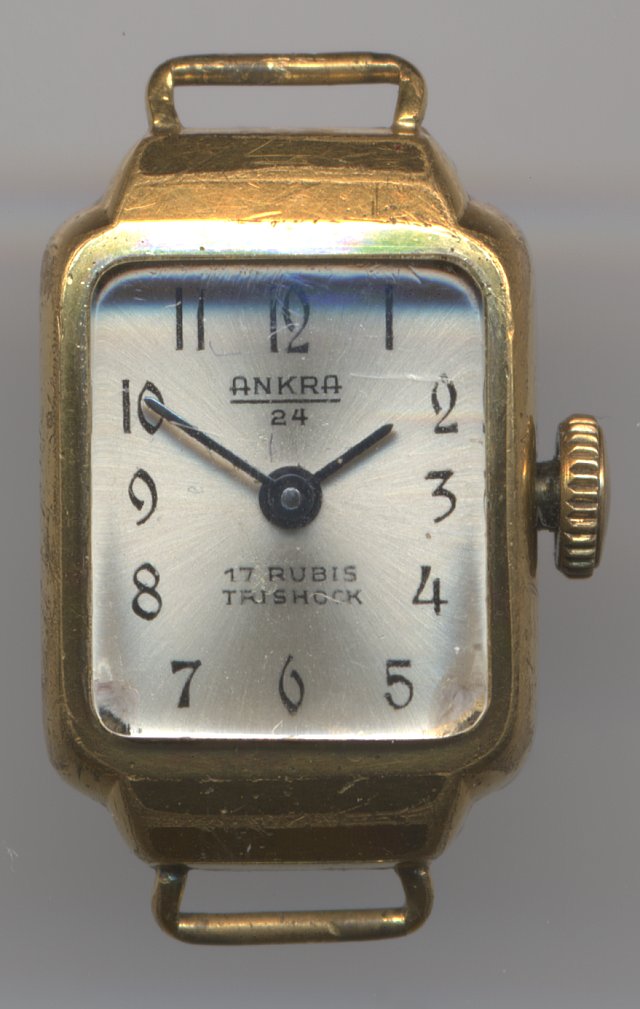 This movement uses a traditional anchor escapement with Felsa-typical transparent anchor palettes, but the rest of the movement, the rather simple Trishock shock protection system, the missing regulator hand and the rocking bar winding mechanism below the that make one wonder, whether ladies’ watches did not deserve the same quality as mens’ watches.