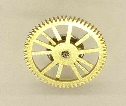 The final gear has got a commutator clutch (broken in the image), which decouples the selfwinding mechanism, when the movement is wound manually.