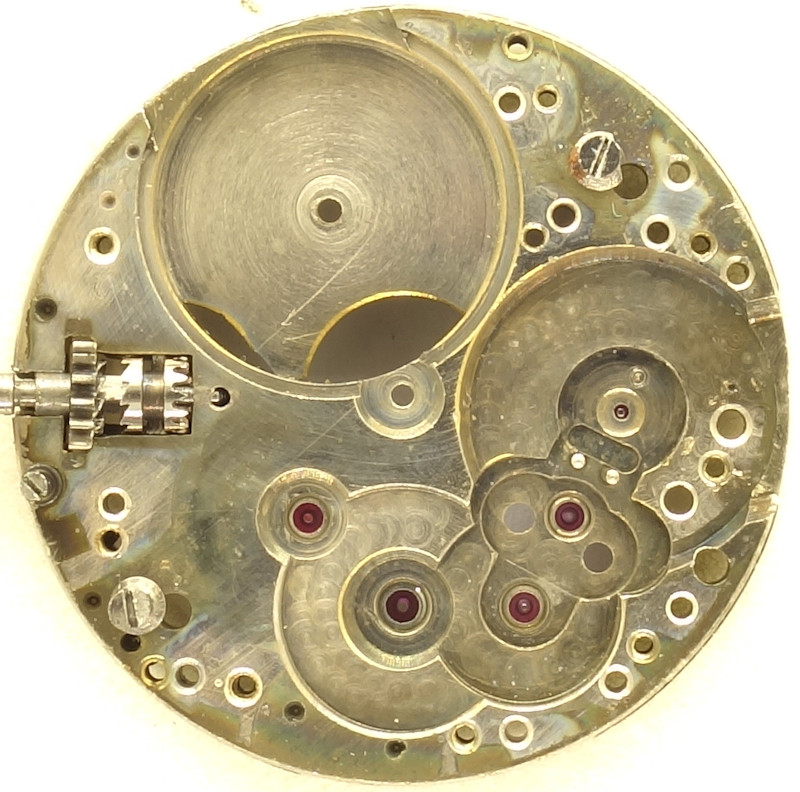 Further characteristics are the vertical edge a 9 o’clock, which is known from pocket watch movements, and two flattenings at 6 and 12 o’clock, which were not photographable.