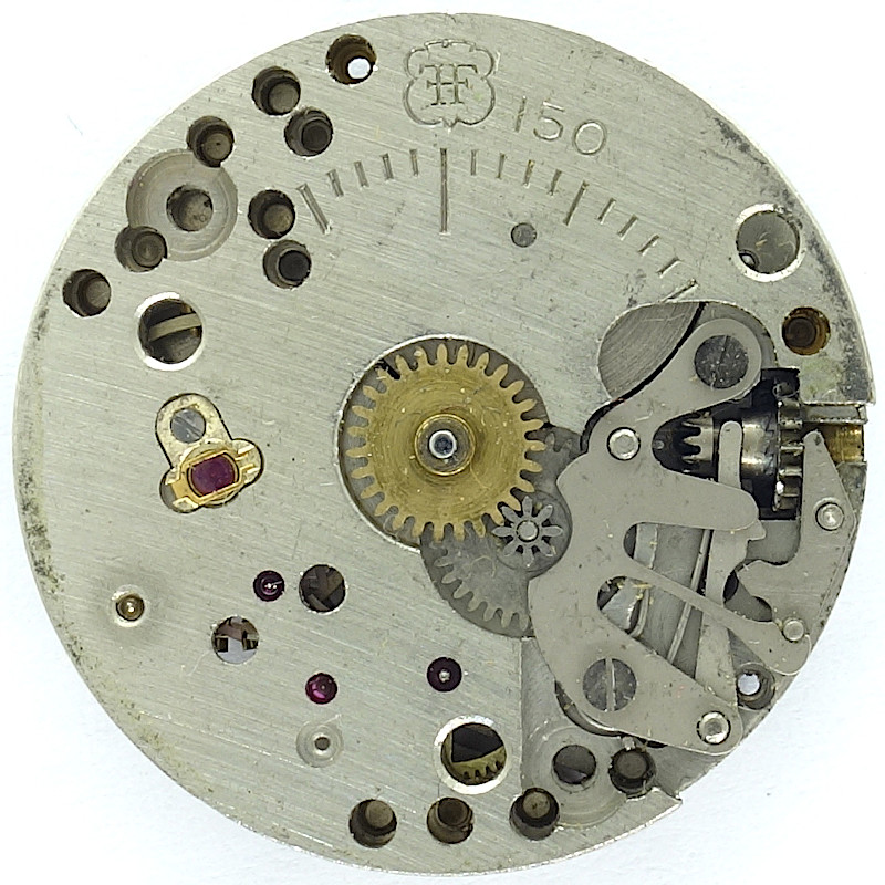 The FHF 150 is a movement, which was made between 1938 and 1952 in quantities of over 1.4 million items. For the time being, its execution was already pretty modern with clearly cut bridges, which were available in different shapes.