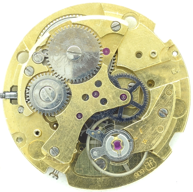 The FHF 909 is one of the rare selfwinding movements, which does not have a manual wind base caliber. It was probably constructed as a true selfwinding movement from the beginning.