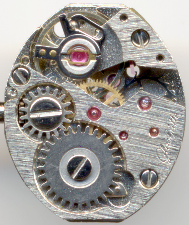 The gear train is very common for those tiny movements. It has got a directly driven center minute wheel and a multi-storey construction where the fourth wheel bearing is above the escapement wheel.