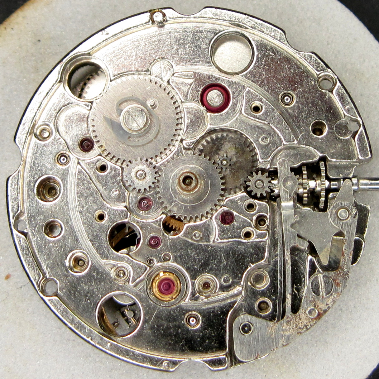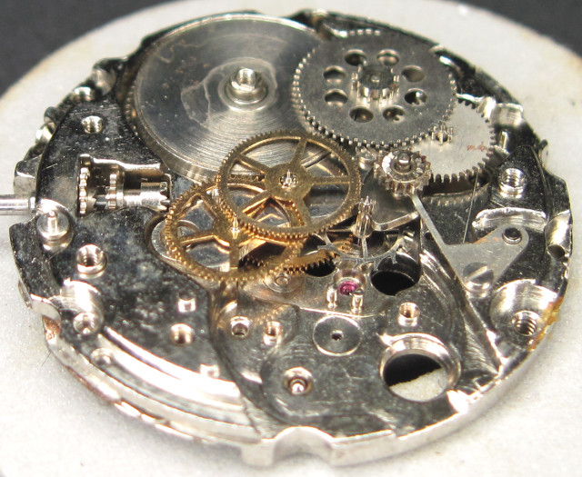 On the HMT with its classical gear train, not only center second wheel, third wheel and escapement wheel are beared under the large gear train bridge, but also the mainspring barrel and the two reduction wheel of the selfwinding mechanism. This is not really service friendly…