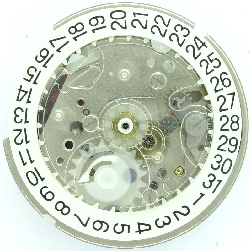The large rotor bearing jewel and the jewel for the first reduction wheel were not changed, as well as the fact, that the gear train is housed in a plastic container.