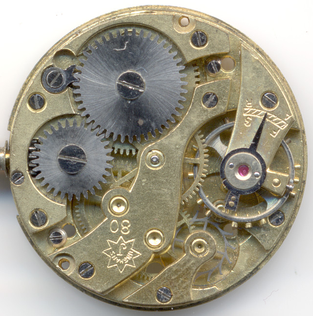 In the early 1930ies, the Junghans caliber 80 debuted, one of their first true inhouse wristwatch movements. It was produced for almost 20 years. The earliest versions, as shown here, had a separate escape wheel cock. It was available with different numbers of jewels, starting from 7, up to 17 jewels.