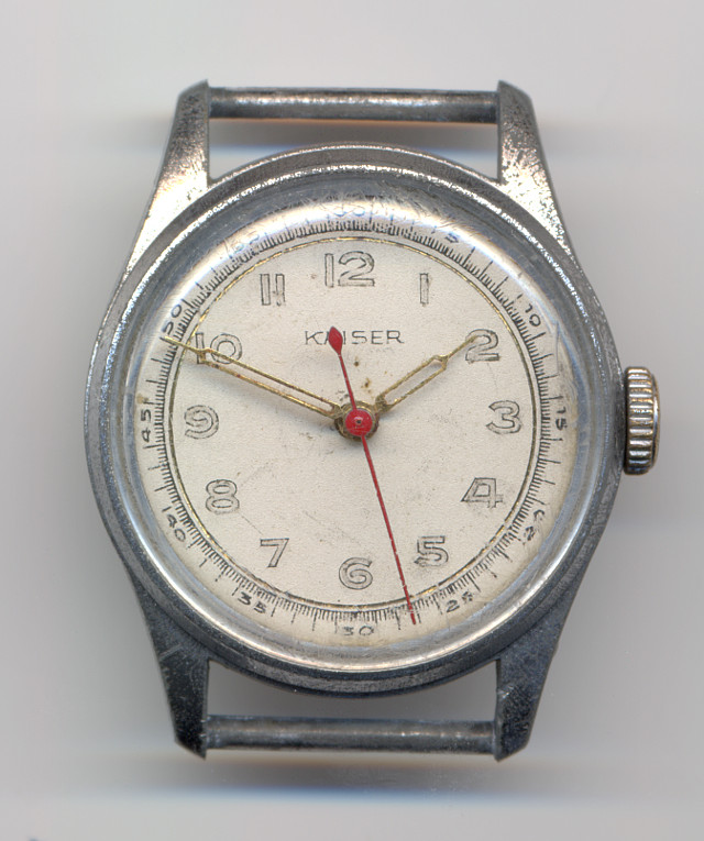 In the early 1950ies, the pin lever movement Kaiser K48 was launched in Villingen, Germany. With a diameter of 10 1/2 lignes, it was like many other pin lever movements of that time with the only difference, that it already had got a central center second hand.