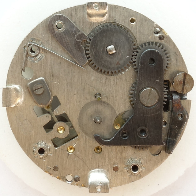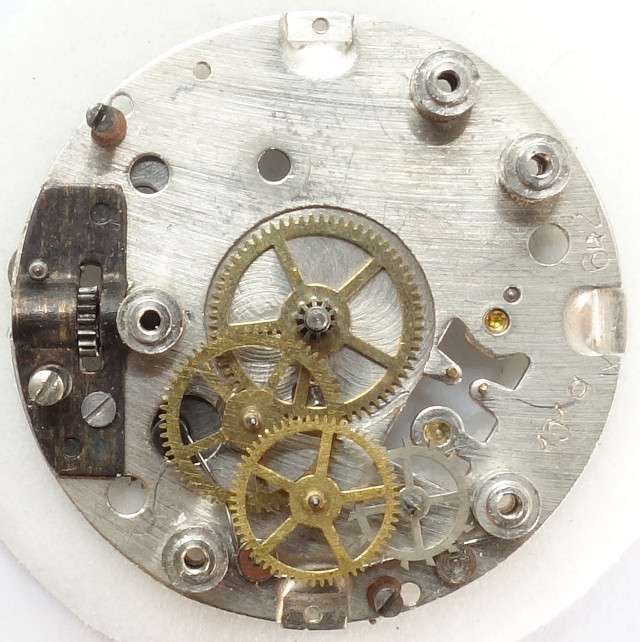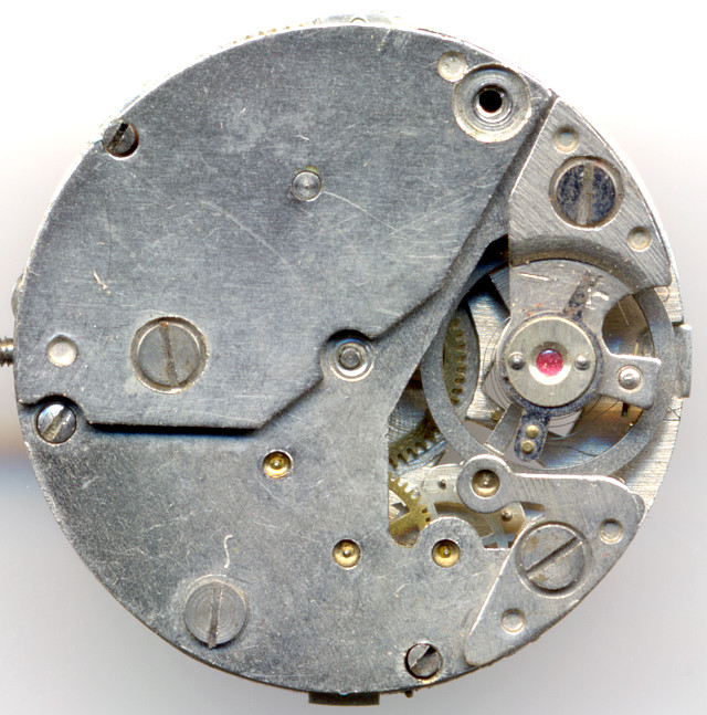 The balance is flat, without screws and cone beared. Bit beats with 18000 A/h. The only bearing jewel of this movement is the upper balance wheel bearing.