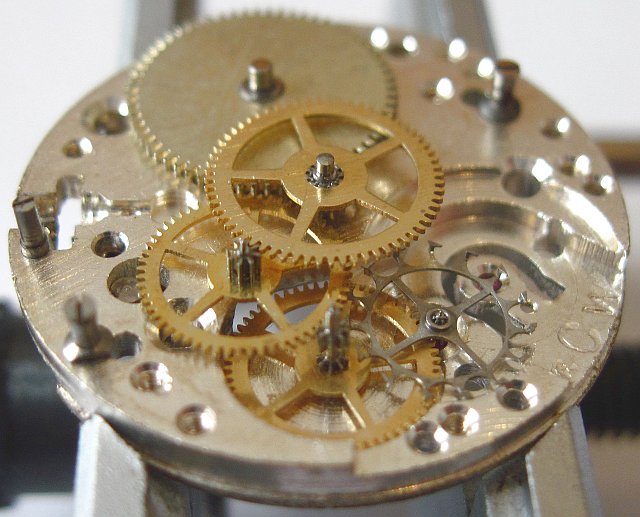 The Kasper 100 uses 6 ruby bearings / cap jewels: Four for the balance and two for the bearing of the cylinder wheel.