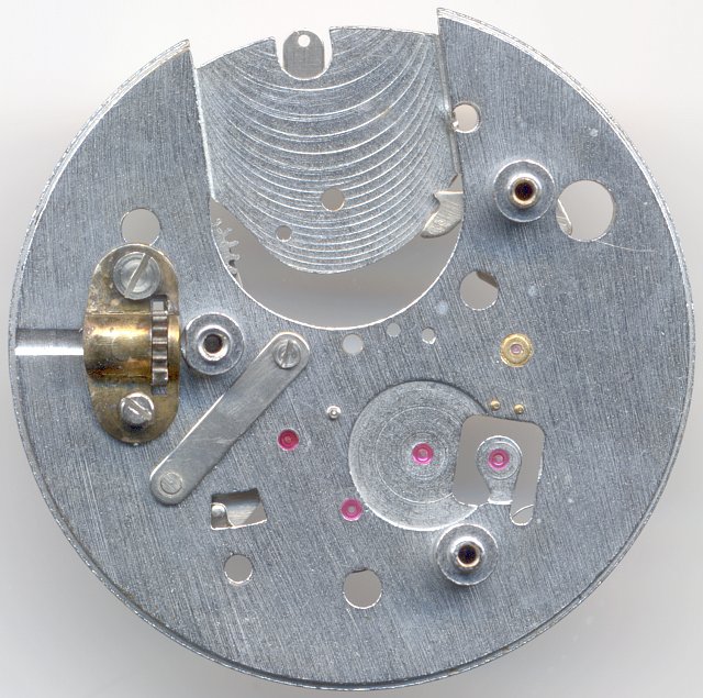 On the dial side, you can see the rocking bar winding mechanism and the click mechanism. It is a well made construction.