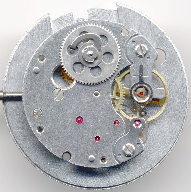 With the exception of the flying beared wheel, all other gears are located in ruby bearings.