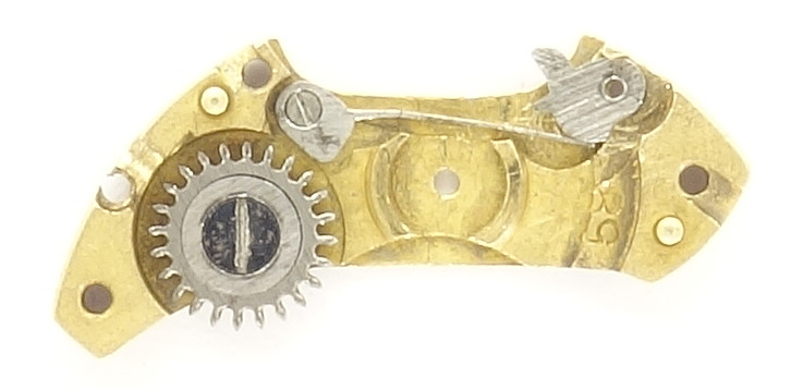 It is pretty odd, that the ratchet is located on the inner side of the mainspring barrel bridge. Since the movement came in bad condition into the archive, it is not sure, that the shown construction of the ratchet is correct.