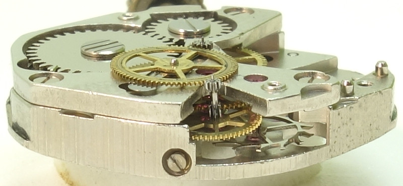 Due to the limited space, the lower bearings of third- and seconds wheel are above the escape wheel.