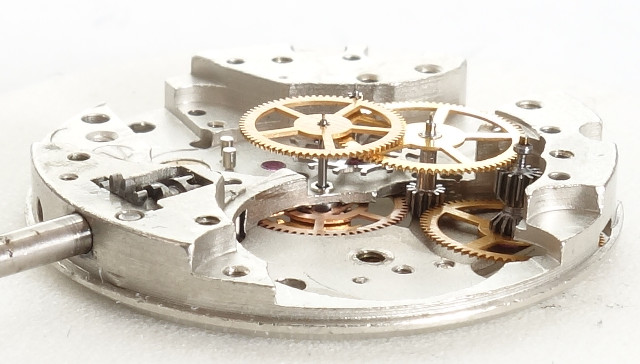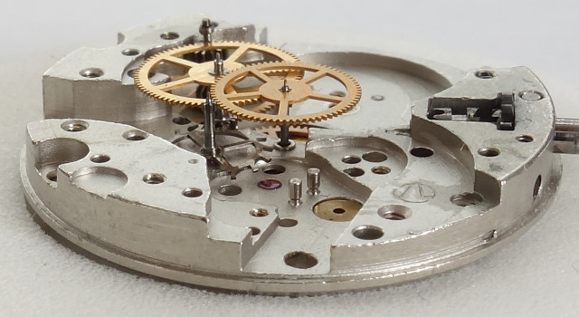 On the empty dial side, you see the minute wheel, which is driven by the third wheel near the center at 7:30 o’clock