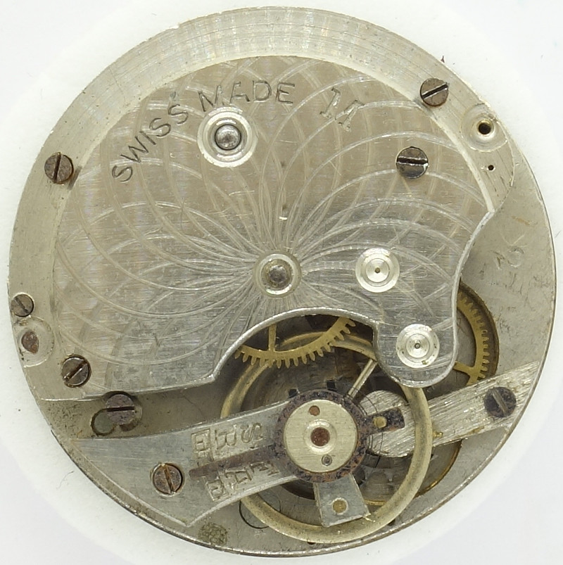 The MST 2 is a simple cylinder movement, probably made at the beginning of the last century, and it could not be identified with 100% certaincy, since it is not properly marked, but the hallhmarks “M” and “2” and the shape of the gear train bridge are a strong sign, that it is an MST caliber 2.