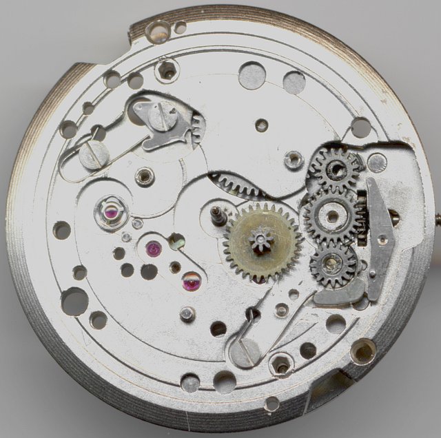 All gears are equipped with synthetic rubis, lever- and escapement-bearing even contain cap jewels on the dial side.