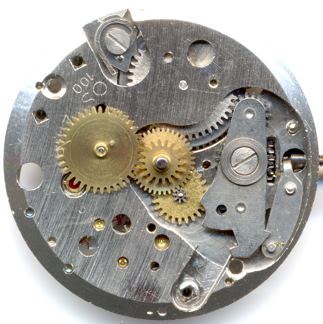 In the late 1950ies, Osco launched the movement series 100, which consisted of simple pallet-lever movement in pillar construction.