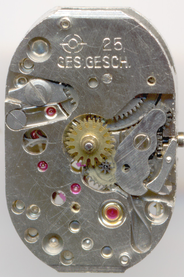 One of the rare ladies’ watches form movements with date indication is the Otero 251, which bases on the Otero 25 and adds a simple calendar mechanism on top. With its nominal size of 5 1/4 lignes (17.4 x 19.9mm) it is a really tiny movement.