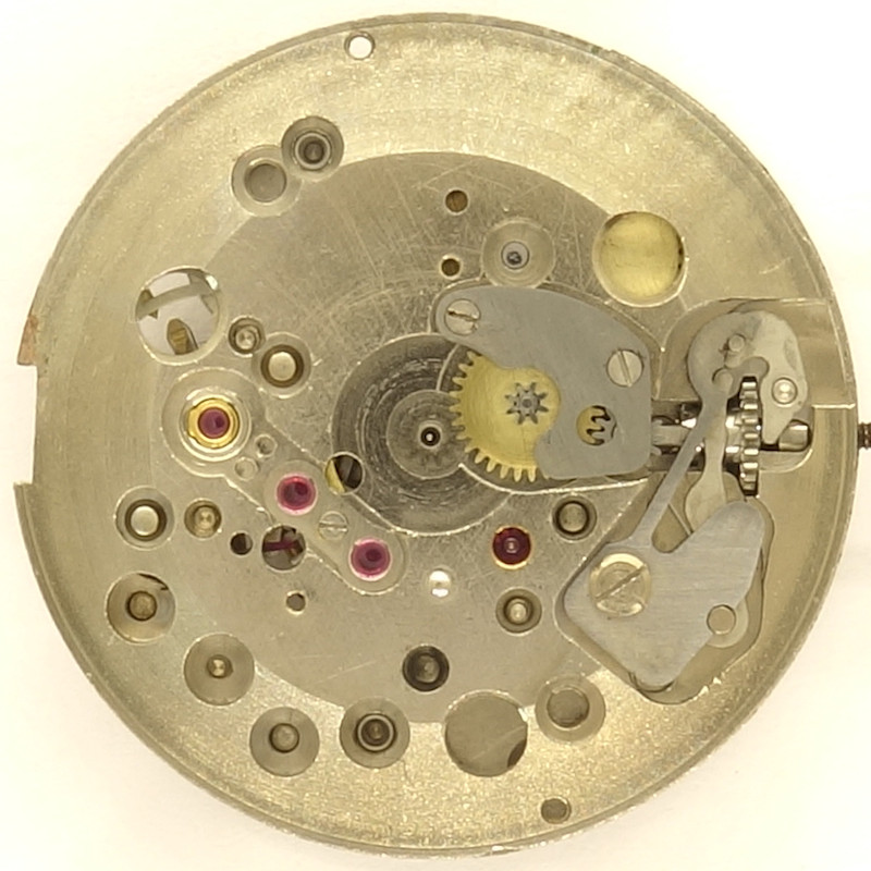 On the yet empty dial side, you can spot the Monorex shock protection and the double cap jewel plate, which covers the escape wheel bearing (good!) and the lever bearing (useless, since it doesn’t hold oil).