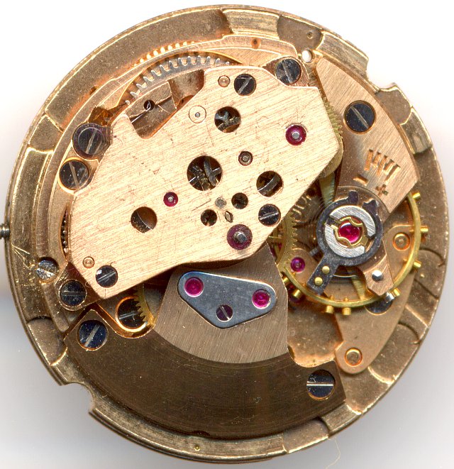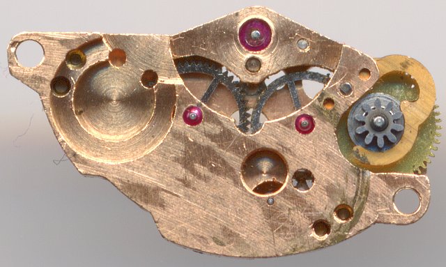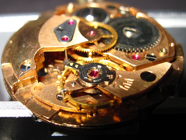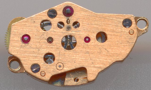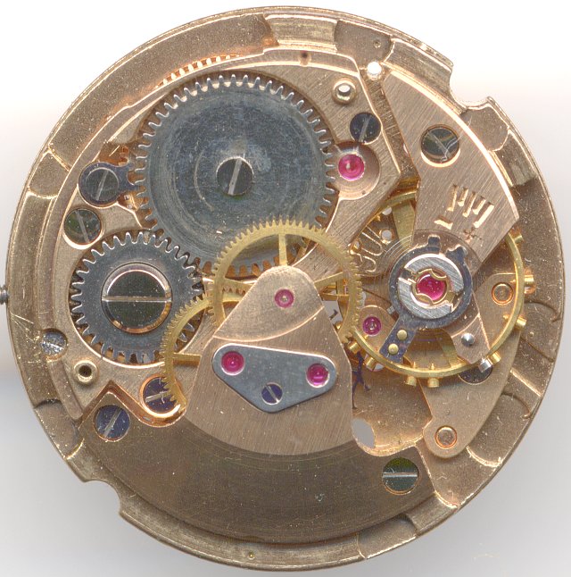 On the side view, you see the enormous hight of the movement - even without selfwinding mechanism. Especially the arbor of the escapement wheel is longer than on almost any other movement.