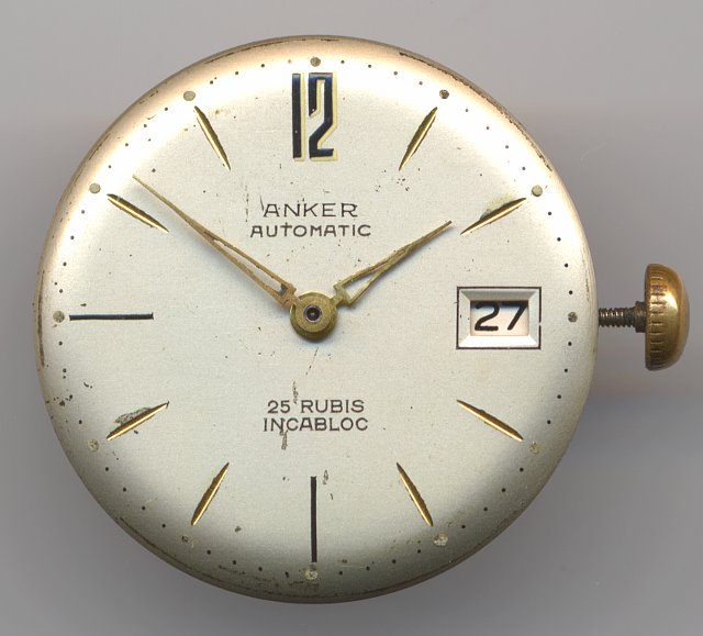On the dial side you see the yoke winding system (here with a broken setting lever spring) and the Incabloc shock protecion system.